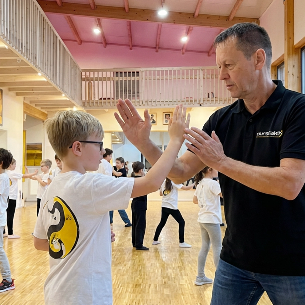 Kids-WingTsun ist Selbstbehauptung in Bewegung: Dein Kind lernt, seinen Körper zu spüren, klar aufzutreten und sich in typischen Alltagssituationen zu schützen auf dem Schulhof, auf dem Heimweg, im Verein, in der Gruppe.