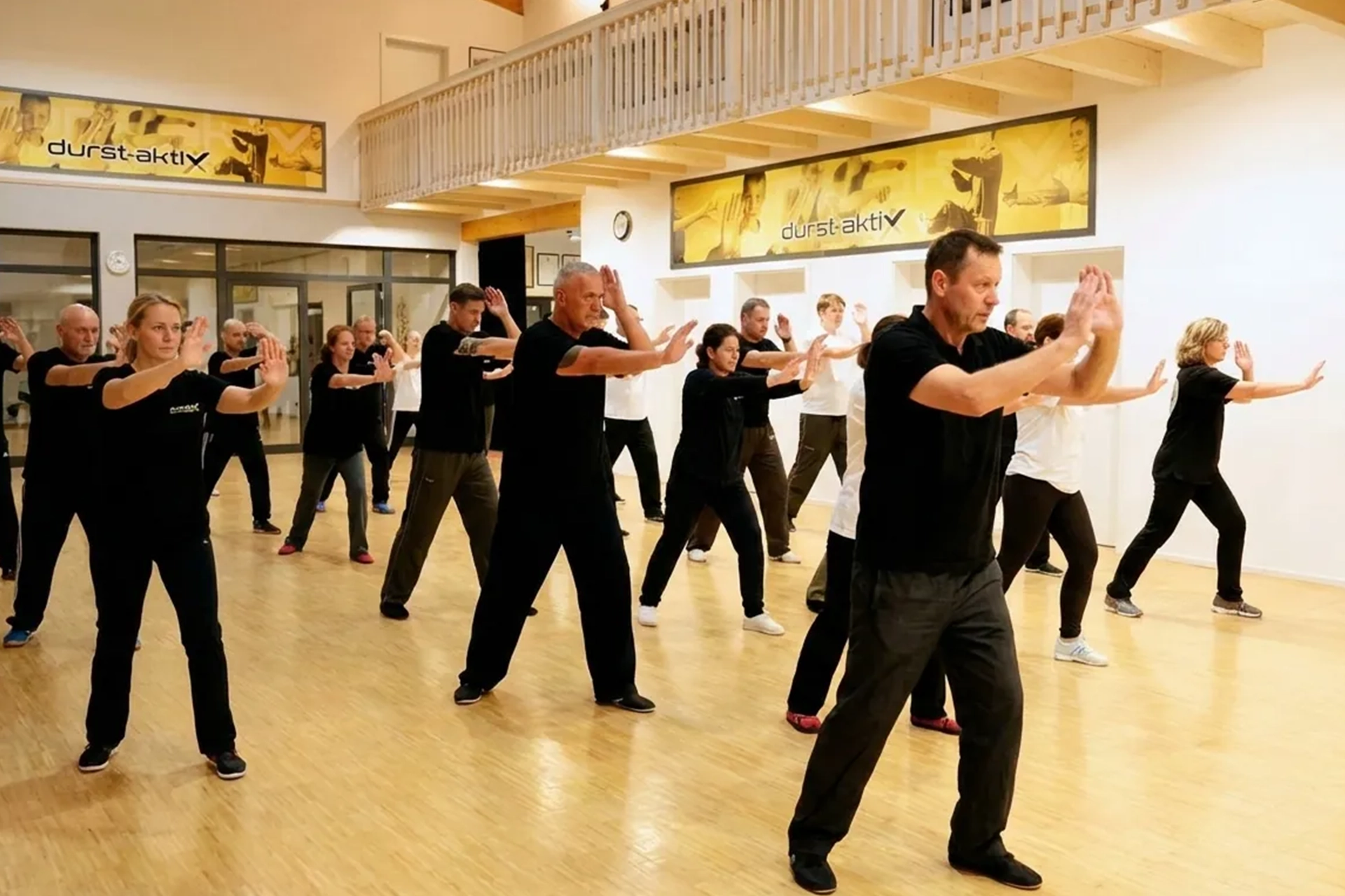 Hier wird nichts künstlich aufgeblasen. Keine peinlichen Vertrauensspiele. Sifu Frank Durst arbeitet klar und direkt. Die Gruppe lernt, wie man mit einfachen Mitteln aus Eskalationsschleifen aussteigt: anders stehen, anders atmen, anders sprechen.
